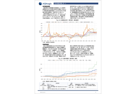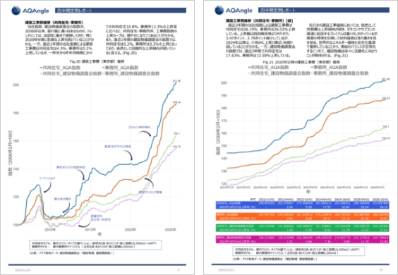 - 刊行物やウェブサイトの情報を複合的に分析している「アクアングル」では、建設コストの動向を多角的に見ることができる
