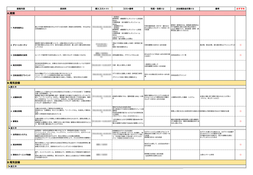 - ライフサイクルコスト(LCC)の視点でイニシャルコストとランニングコストのバランスを見極め、ZEB実績のある設計者を選定することが重要
