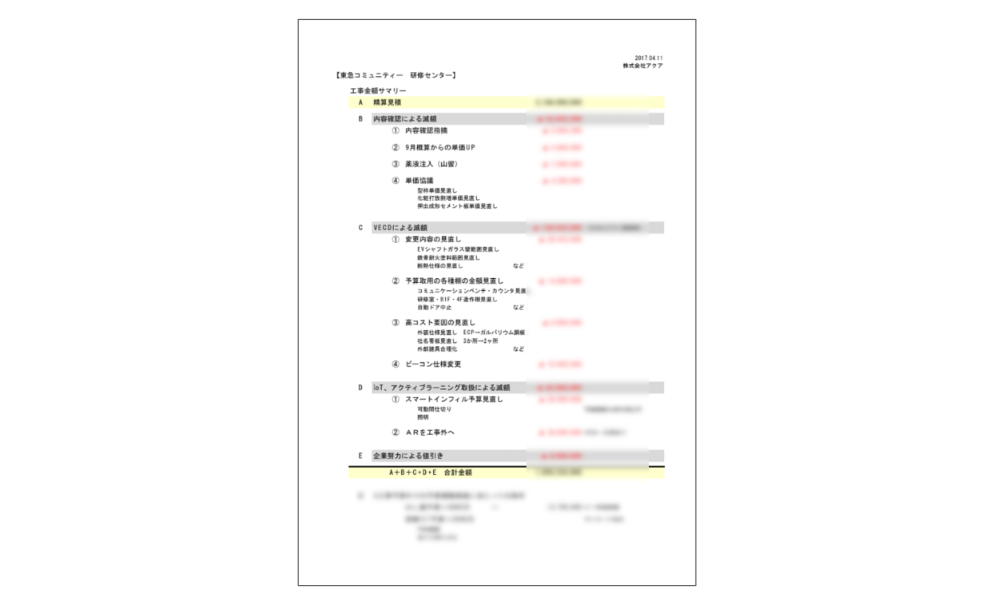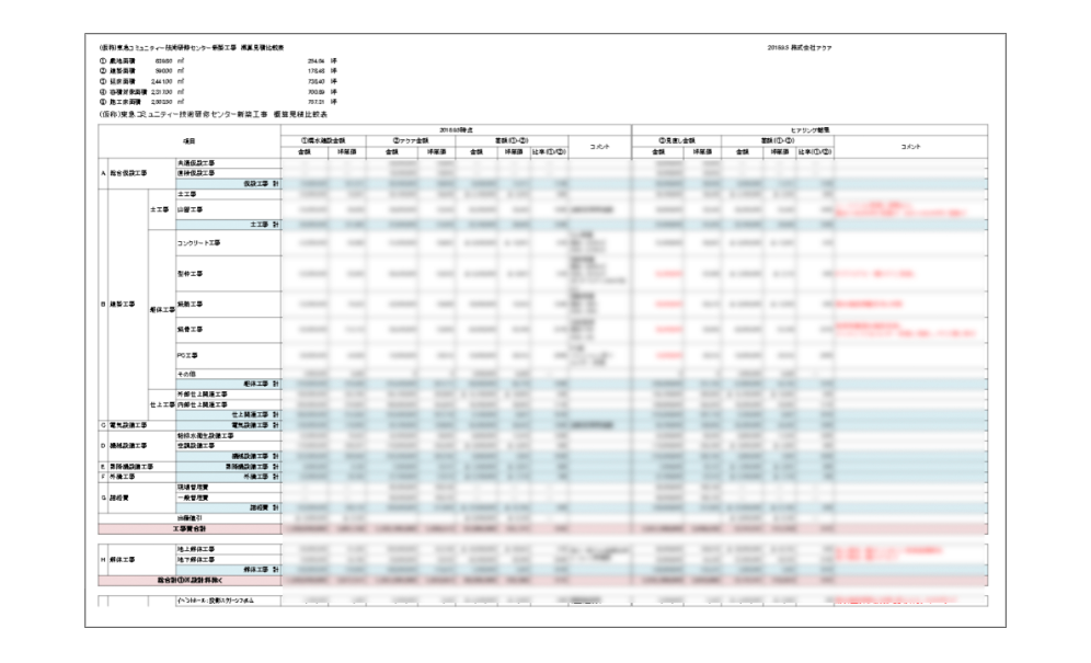 アクアは基本計画の途中から参画し、概算見積を作成しコストのベンチマークを設定すると共に、設計施工者の概算見積と比較することでその妥当性を検証しました。ZEB認証に影響のある省エネ設備など専門性の高い項目に関しても、詳細図面が無い段階からコストを算出・検証し設計施工者と協議することで適切なコストコントロールをサポートしました。